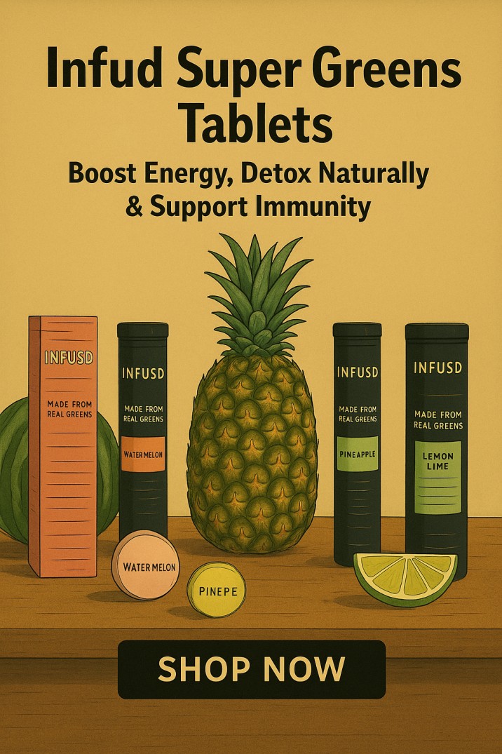 Discover the power of nature with Infud Super Greens Tablets – your daily source of essential nutrients, antioxidants, and plant-based vitality. Each super green tablet is packed with premium superfoods like spirulina, chlorella, wheatgrass, and kale, designed to help you feel energized, detoxified, and balanced every day.