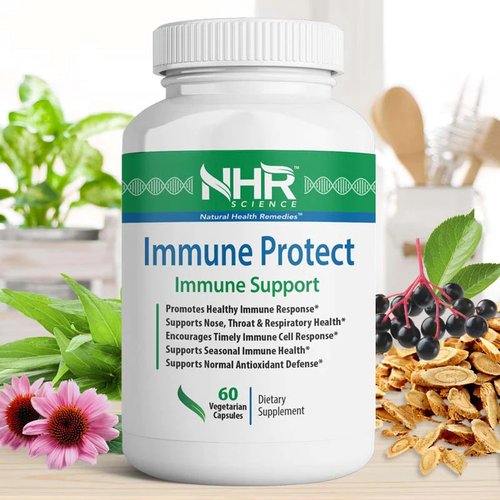 NHR Science Immune Protect is a comprehensive arsenal of immune-supportive powerful herbs, helping the body to activate your immune system’s primary defenders, encourage macrophages and natural killer cell function, and help supports seasonal immune health. Immune Protect is an all-organic blend of Organic AstraCare™ Astragalus extract, Organic EchiMune™ Echinacea extract, Organic ElderberryCare™, and Organic ParActin® patented Andrographis extract that have been clinically studied to support a healthy immune response, encourage timely immune cell response, help defend the body in the face of cold-weather challenges, and fortify your immune system to empower good health through all seasons.*